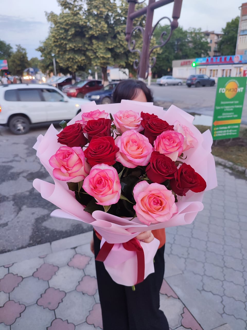 Букет из розовых и красных роз привнесет в жизнь ярких красок и лучистого тепла.. Милое оформление розовых цветов показывает расположенность и искреннее желание поднять настроение близкому человеку.