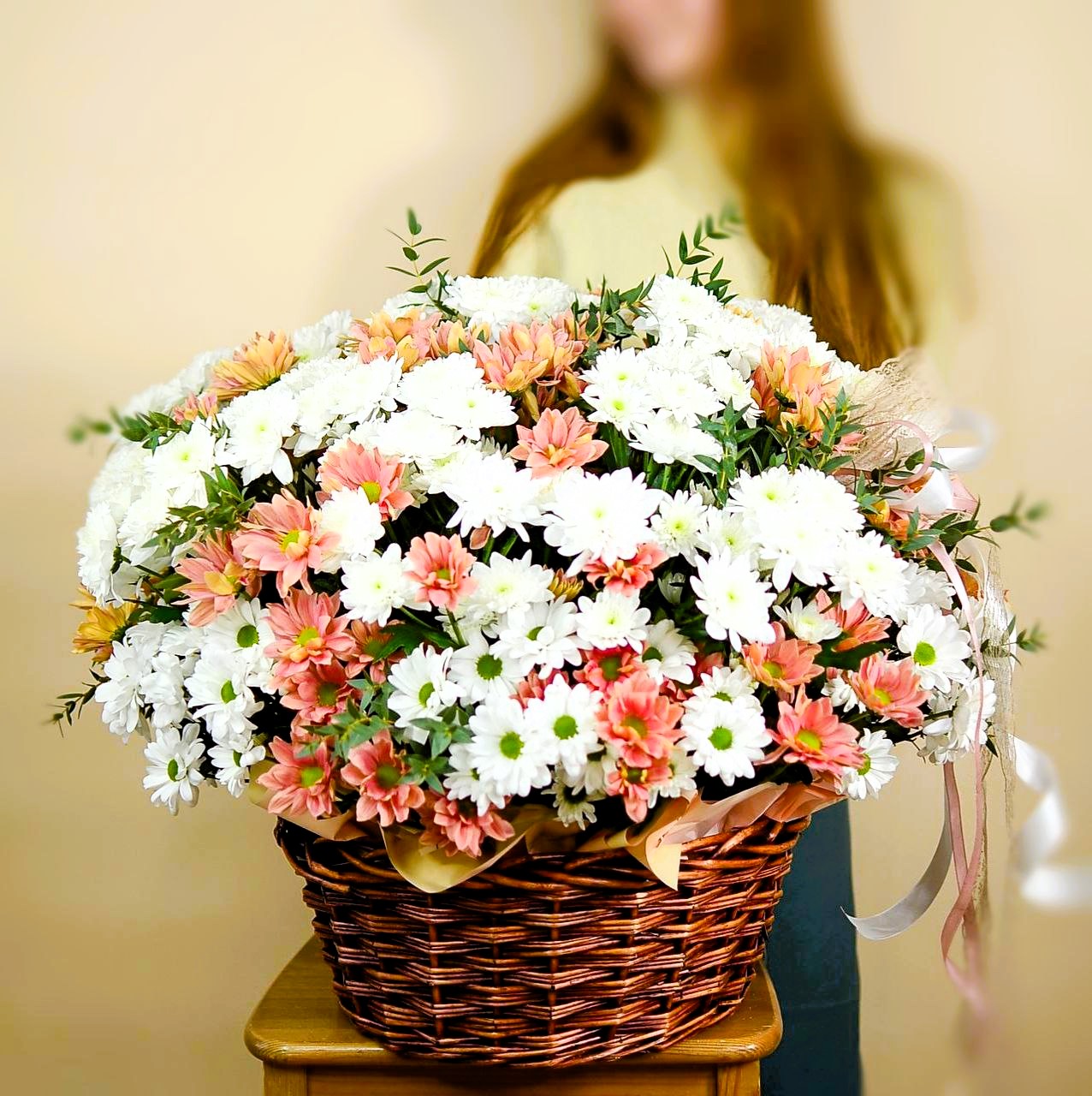 Корзина с кустовыми хризантемами — это идеальный способ выразить свои чувства и украсить любой интерьер. Эти яркие цветы символизируют радость и позитив, наполняя пространство теплом и светом. Кустовые хризантемы, благодаря своему разнообразию форм и оттенков, создают неповторимые композиции, которые поражают своим очарованием.