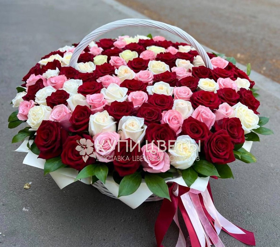 Представляем вам эксклюзивную корзину из 101 свежей разноцветной розы – воплощение роскоши и красоты. Этот грандиозный букет создан, чтобы вызвать восторг, подарить радость и выразить самые глубокие чувства любви и восхищения. Идеальный подарок для тех, кого вы хотите поразить по-настоящему.