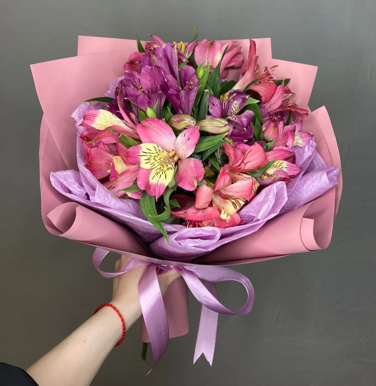 Представьте себе букет из альстромерий, где каждый цветок рассказывает свою историю. Белоснежные лепестки как бы обнимают солнечные желтые, а нежно-розовые перетекают в глубокие пурпурные оттенки, создавая гармонию и уют. Такой букет способен украсить любой праздник, добавив в атмосферу нотку веселья и элегантности.