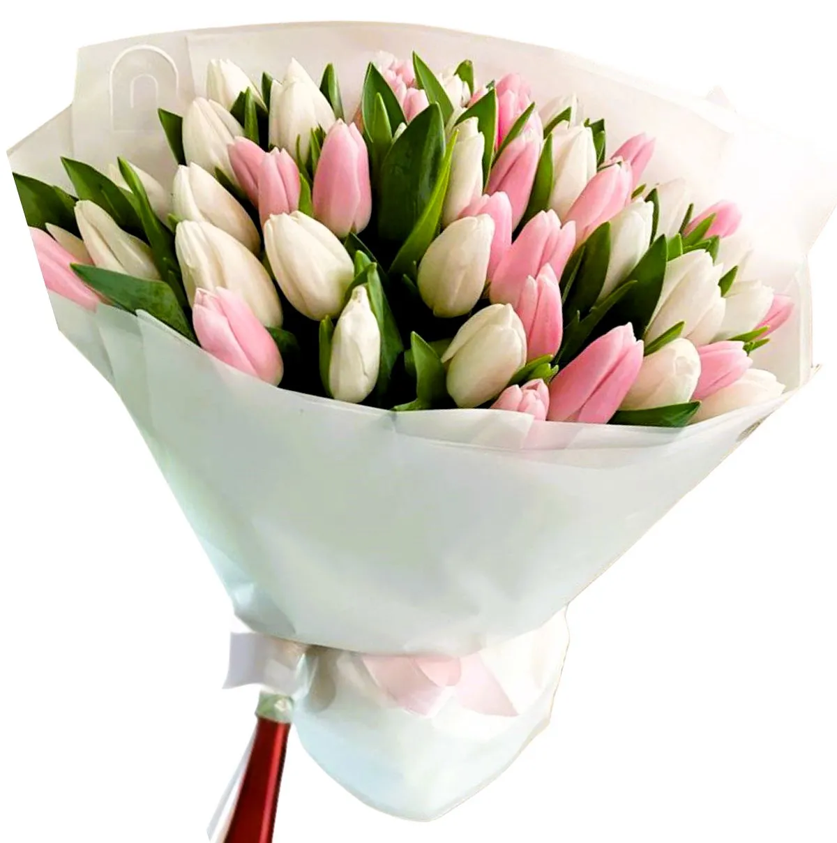 Букет из белых и розовых тюльпанов — это настоящая симфония весенней свежести и изящество