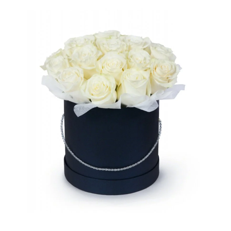 Траурная шляпная коробка с белыми розами