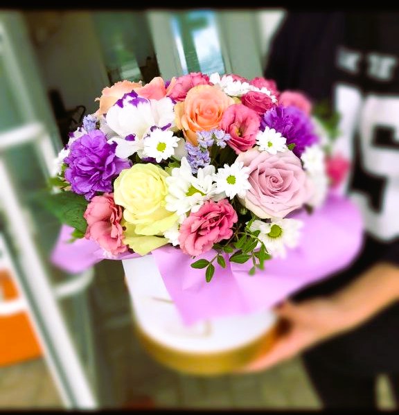 Шляпная коробка с цветами в ярких тонах — это идеальный подарок для любого повода!
