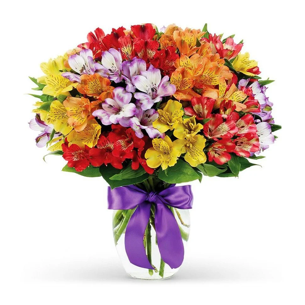 Летние цвета отлично передаются этим букетом. Альстромерии – цветы универсальные, продемонстрируют улыбку и дружеский настрой. Подарив этот букет близкому, вы надолго поднимете настроение.