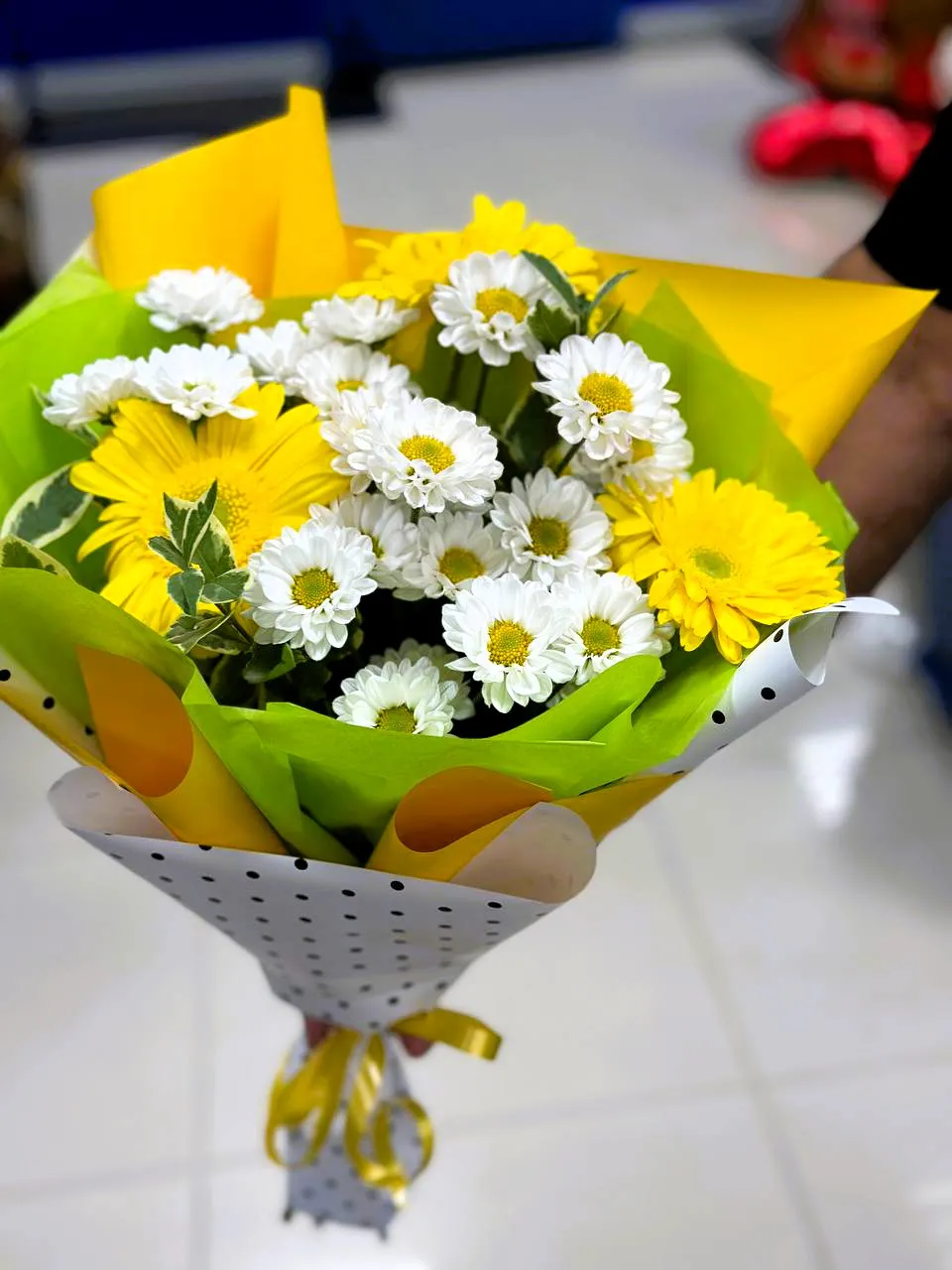 Закажите букет из желтых гербер и хризантем и подарите кусочек счастья! Букет из желтых гербер и хризантем — это яркое и радостное сочетание, способное поднять настроение и подарить улыбку. Желтые герберы символизируют солнце, оптимизм и дружелюбие, а хризантемы добавляют elegance и утонченность. Такой букет станет прекрасным акцентом на любом торжестве, будь то день рождения, свадьба или корпоративное мероприятие.
